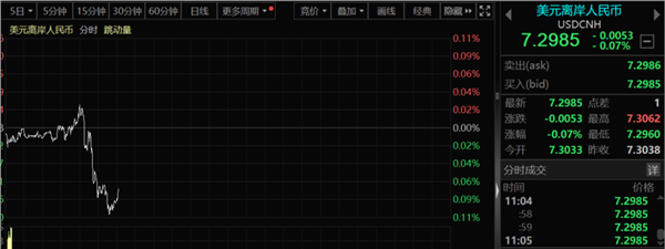 值得注意的是,今天早盘反弹的不止A股,还有A50期指,该指数一度直线拉升。而且,离岸人民币这一关键变量,在美元指数上涨的过程当中,亦出现了反弹。显然,在7.3附近的防守力度和意愿还是比较强。